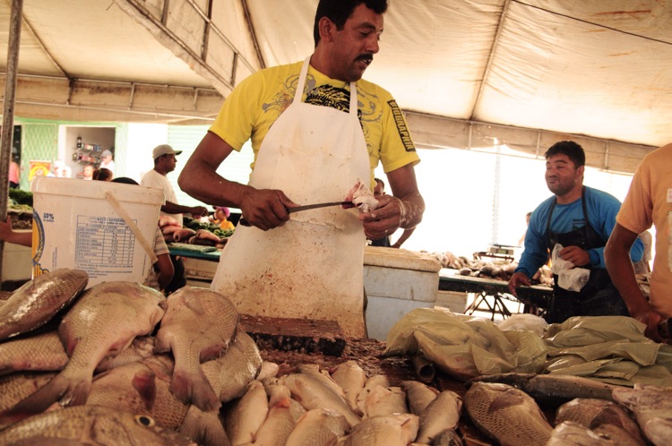Sabato ho accompagnato al mercato il mio amico Fabio che vive a Natal da molti mesi. Il mercato popolare di Alecrim è un luogo molto particolare. Non ci sono turisti, ne stranieri. Centinaia di venditori offrono i loro prodotti sotto una grande tenda che ripara dal sole tropicale. Si trovano frutta e verdura, pesce fresco di ottima qualità per chi lo sa riconoscere. Si può comprare una gallina, un oca o una capra viva.